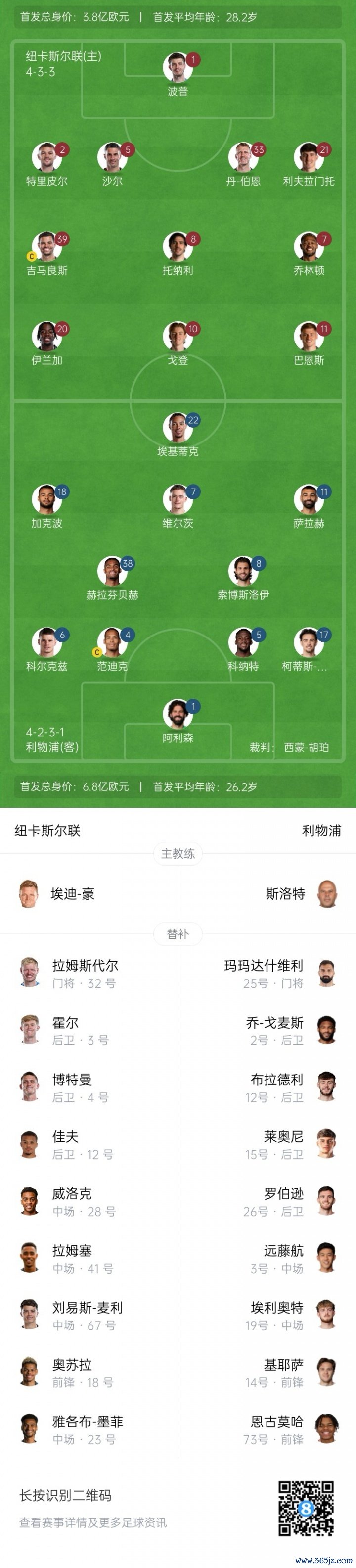 8月26日讯 英超第2轮,纽卡斯尔对阵利物浦,赛前首发公布。麦卡利斯特本场缺战,据悉他的太太行将生产。