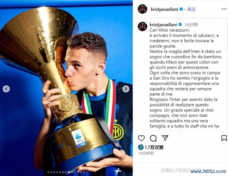 阿斯拉尼社媒写说念:“亲爱的国米球迷们,目下是向巨匠告别的时辰了,敬佩我,找到合乎的言辞简直阻止易。穿上国米的球衣是我儿时怀揣的梦思,其时我怀着满心的珍视为国米球员们加油。