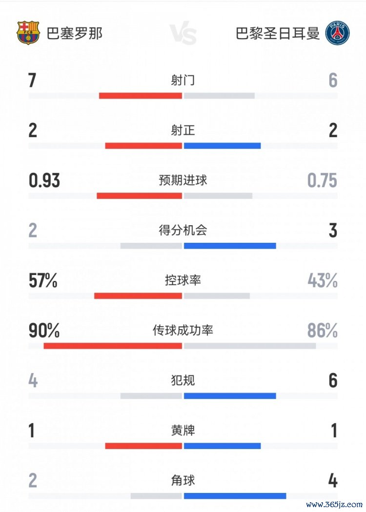 10月2日讯 欧冠焦点战,巴萨半场1-1巴黎。两边半场重心数据对比如下↓(主队巴萨在前)