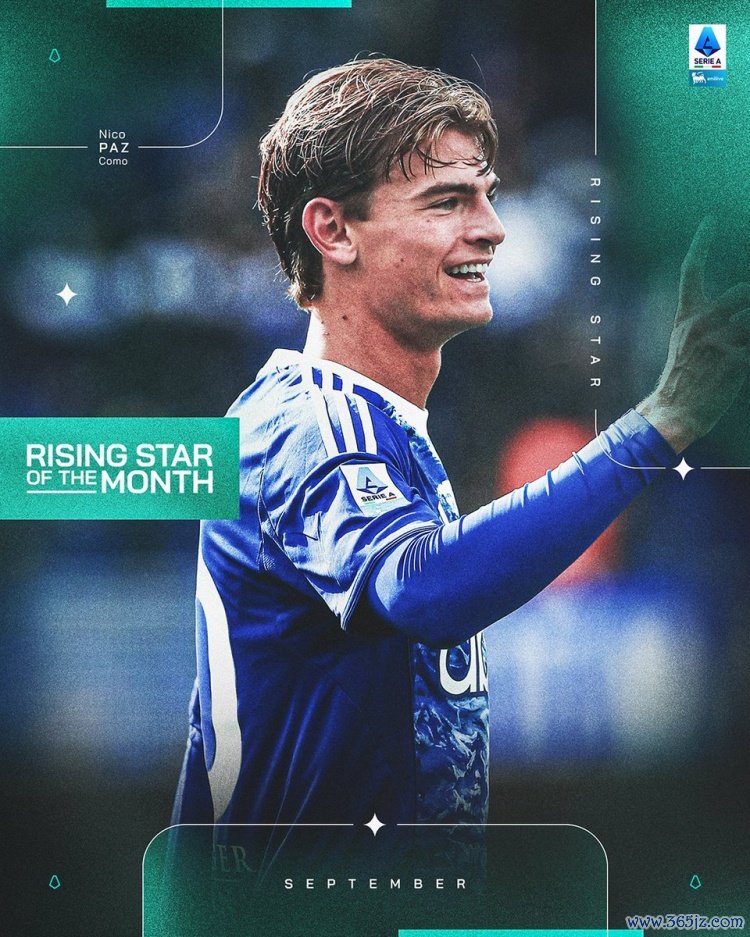 10月8日讯 意甲定约官方布告,科莫中场帕斯当选9月份最好新星奖。