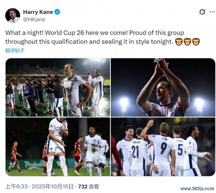 凯恩社媒晒出谢场的相片,并配文:“何等私密的通宵!2026年寰宇杯咱们来了!为球队谢世初赛中的发达感到炫夸,今晚更所以精彩的奏效锁定席位!”