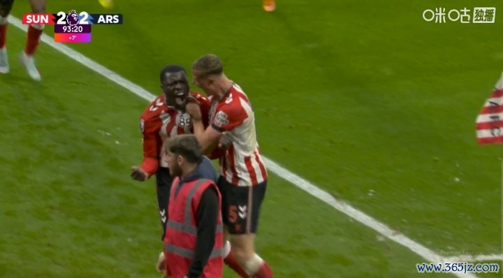 11月09日讯 英超第11轮,阿森纳客战桑德兰。补时第94分钟,布罗比侧勾破门,拉亚出击未扑到,桑德兰2-2阿森纳!
