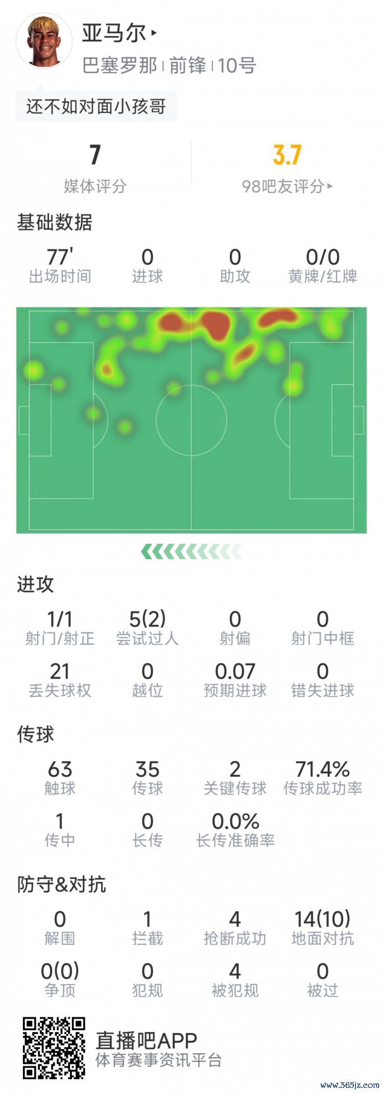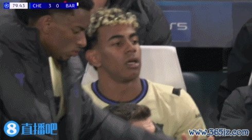 11月26日讯 欧冠联赛阶段第5轮,切尔西主场迎战巴塞罗那,比赛第80分钟,亚马尔被换下,在替补席面无色彩。