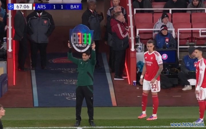11月27日讯 阿森纳vs拜仁第68分钟,萨卡、斯凯利下场,卡拉菲奥里、马丁内利登场。