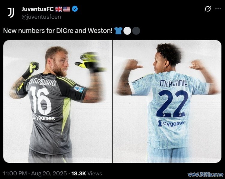 8月21日讯 尤文吏宣,迪格雷戈里奥以及麦肯尼更换号码。