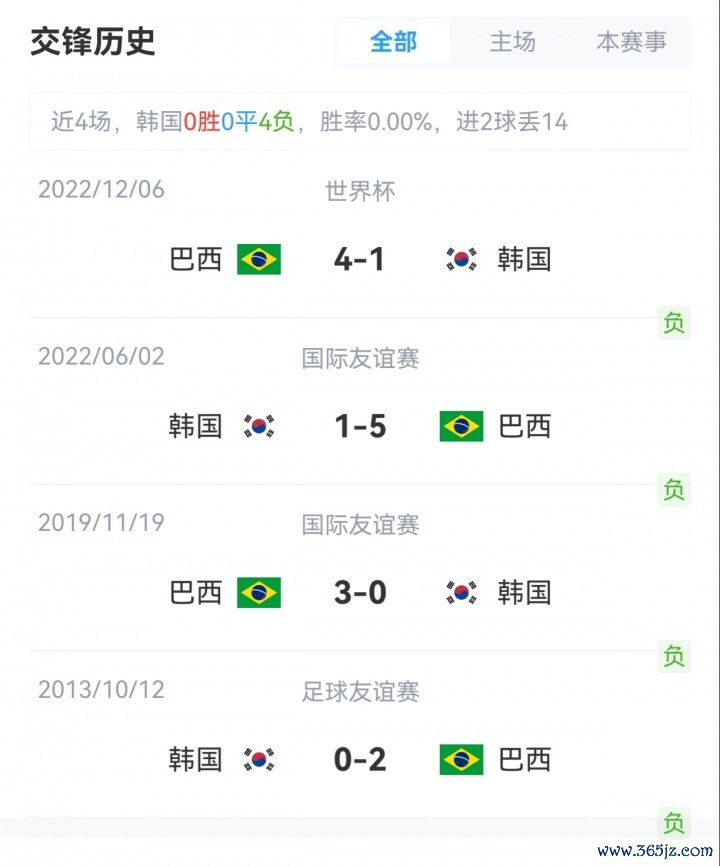 韩国FIFA排行第23,巴西FIFA排行第6。两边前次交手是2022年寰宇杯淘汰赛,巴西4-1大捷韩国。