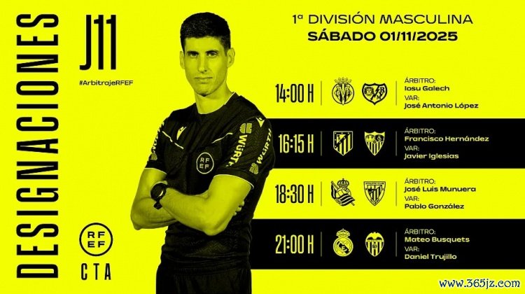 10月31日讯 本周末,西甲第11轮将拉开帷幕。西班牙足协官方公布了本轮比赛部分场次的裁判安排,特鲁伊略国法皇马主场迎战瓦伦西亚。