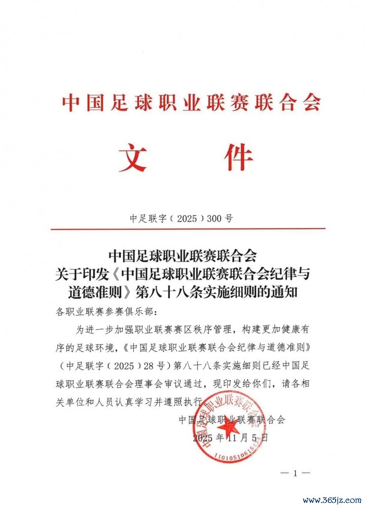 11月05日讯 中足联发布顺序与谈德准则第八十八条持行细目,该细目将于2026年联赛第一场比赛之日起持行。