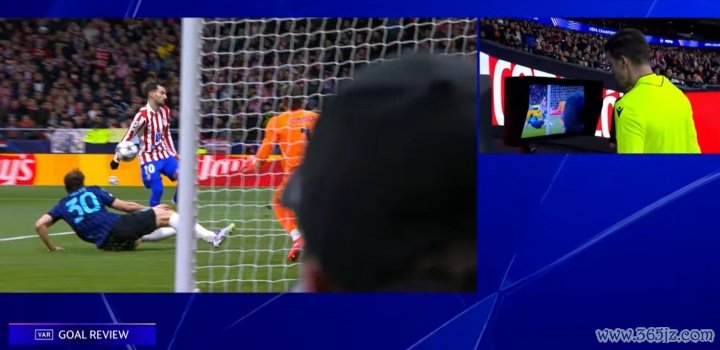 在此次弹珠台般的攀附反弹中,阿尔瓦雷斯得球后跳跃门将索默将球打进。主裁判勒西洋耶当即判罚进球无效,明确指出他以为马竞球员存在违章触球从而影响了遑急发展。但比赛并未立即规复,VAR裁核查合手续了数分钟,随后主裁判到场边查看回放。
