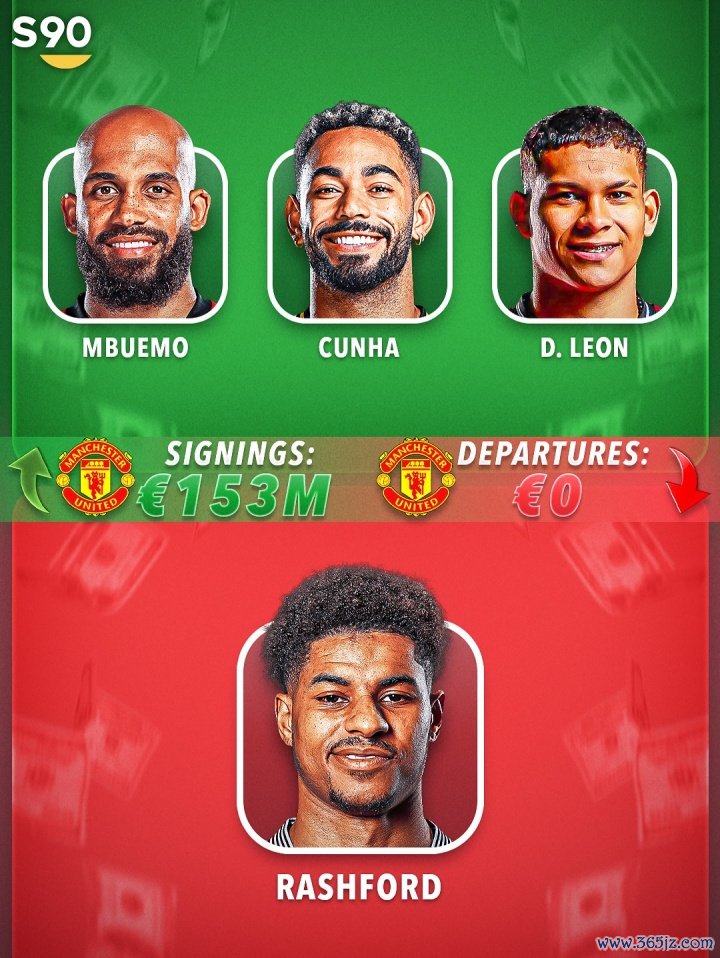 2-曼联:转会开销1.532亿欧,转会收入0,净开销1.532亿欧