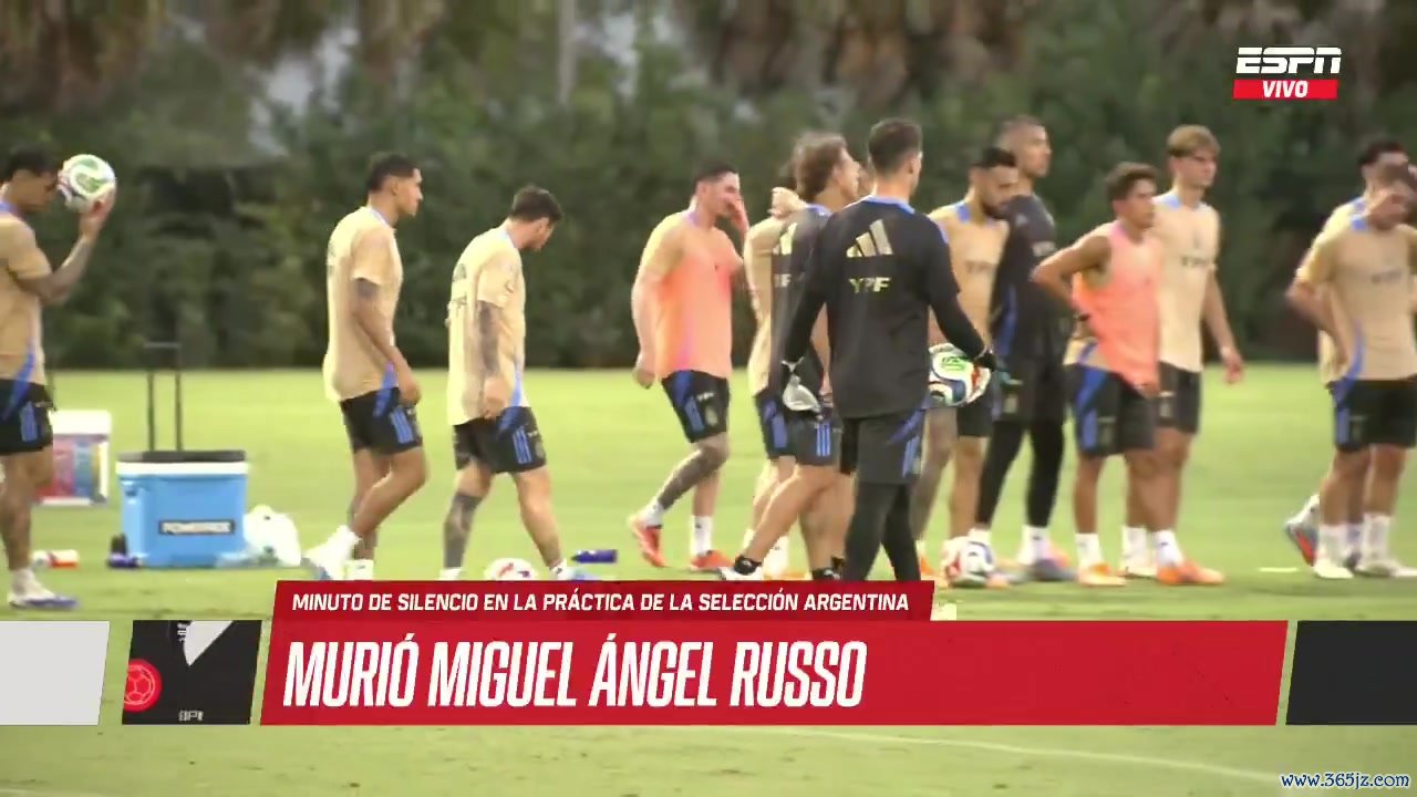 阿根廷队正在迈阿密备战友谊赛,球队在检修场上进行致哀典礼,以吊问牺牲的鲁索。