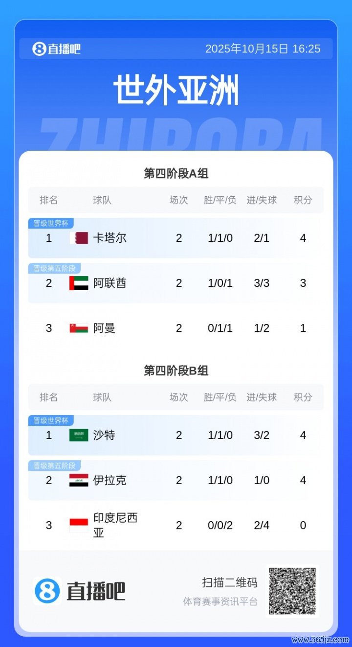10月15日讯 世初赛亚洲区第四阶段放弃,该阶段的两个控制国度卡塔尔和沙特均顺利晋级,两队主场作战加之能比其他球队多休息3天的安排,遭到了其余国度的集体炮轰。