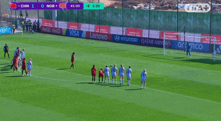 上半场补时阶段,中国队禁区内造点,周欣怡主罚点球射中,中国队2-0跳动挪威队。