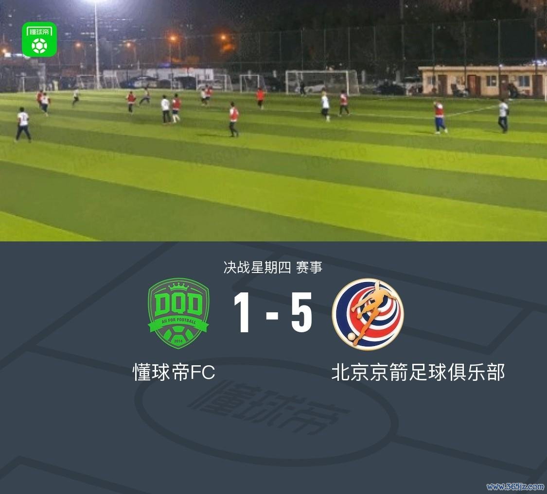 对方攻入一球,懂球帝1-5北京京箭足球俱乐部(因信号原因无GIF)