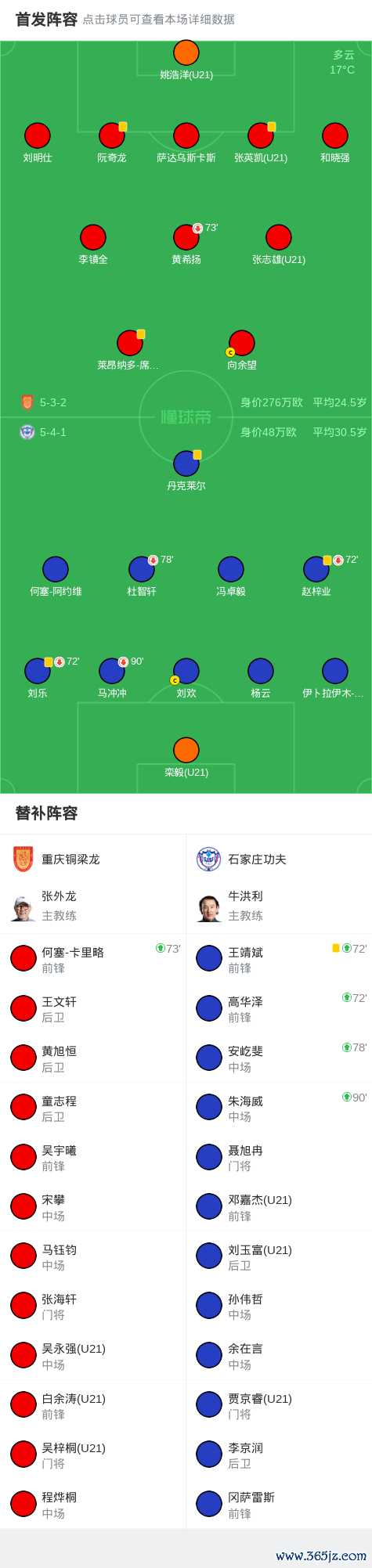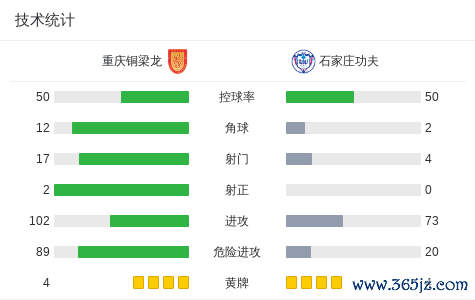 北京时辰10月26日中国足球甲级联赛 联赛 第28轮,重庆铜梁龙主场对阵石家庄功夫。最终比分重庆铜梁龙 0-0 石家庄功夫。