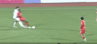 第77分钟,阮奇龙被铲倒在地,裁判默示犯规吹罚淘气球