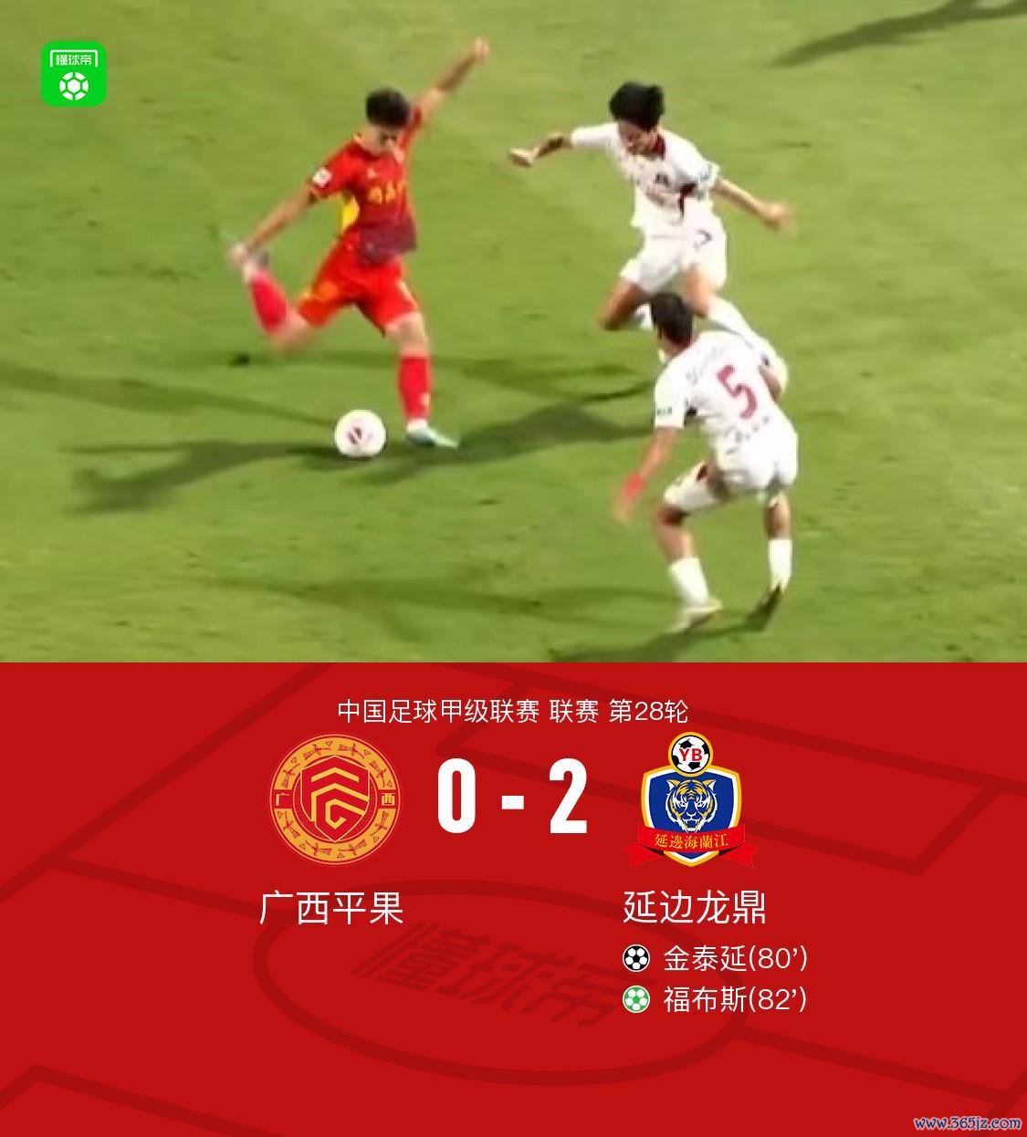 北京时辰10月26日中国足球甲级联赛 联赛 第28轮,广西平果主场对阵延边龙鼎。延边龙鼎金泰延破门,福布斯破门。最终比分广西平果 0-2 延边龙鼎。