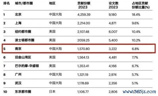 统计流露,2023年全球十大科研城市中,中国城市占五席,永诀为北京、上海、南京、广州、武汉;其中,南京较2023年排行高潮一位,踏进全球前五。