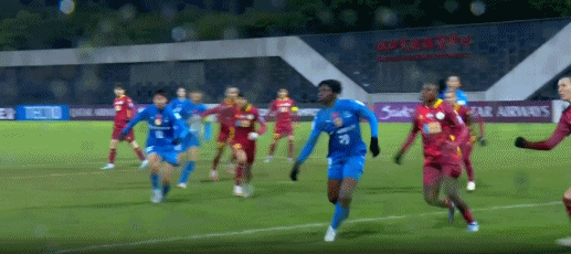 第20分钟,姜晨璟头球后蹭,唐涵造亚当斯乌龙,武汉女足1-0纳萨夫女足