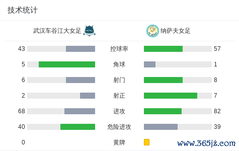 北京时刻11月17日,亚足联女子足球冠军联赛小组赛第一轮伸开较量,武汉车谷江大女足迎战纳萨夫女足。上半场西马金娜手球送点,马君的点球被约尼姆库洛娃扑住。之后姜晨璟头球后蹭,唐涵造亚当斯乌龙,之后奥乌苏禁区内打佛门打偏,半场补时阶段卡拉奇克传中,库德拉托娃破门。最终两边以1比1捏手言和。